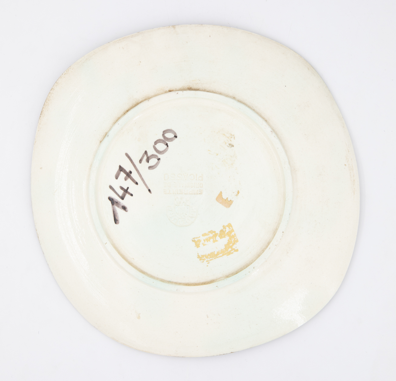 Timbro Madoura Plein Feu - Empreinte originale de Picasso impresso e numerazione (Esemplare 147/300) a pennarello al retro