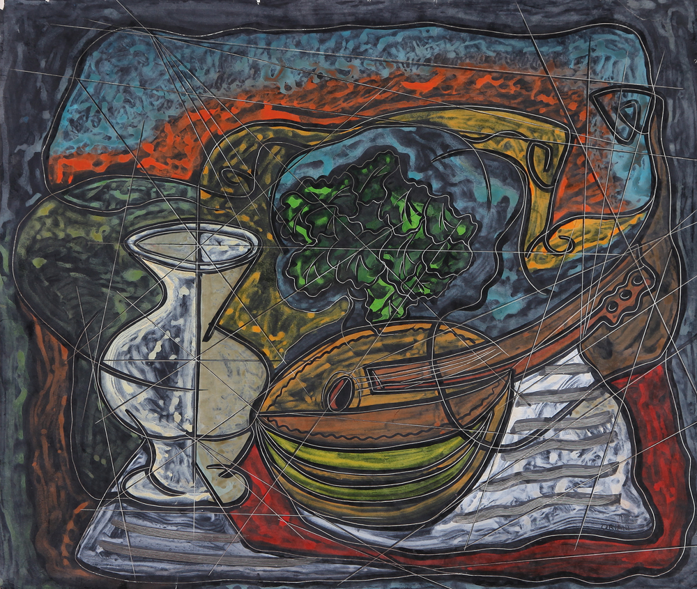 PIPPO ORIANI Torino 25/06/1909 - Roma 01/12/1972 Ritmo di oggetti, 1935-38 encausto, graffito su cartone gessato cm. 50x60, firma in basso a destra, titolo e dichiarazione d'autenticità dell'artista al retro, pubblicato sul Catalogo Generale delle Opere di Oriani volume primo, testi di Giovanni Lista e Mariastella Margozzi, Editoriale Giorgio Mondadori, pagina 126 repertorio FPO/MV542.