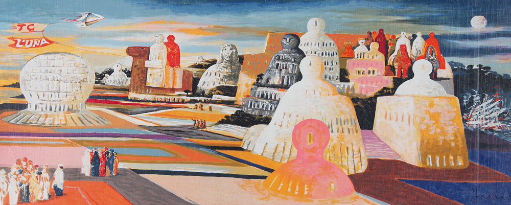 SALVATORE FIUME Comiso (Rg) 23/10/1915 - Canzo (Co) 04/06/1997 TG l'una, 1983 serigrafia polimaterica a 67 passaggi di colore su tela cm. 60x150, esemplare P.A., firma in basso a destra, certificazione d'autenticità al retro.