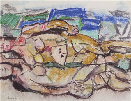 Fausto Pirandello (Rom/Roma 1899 – 1975) Bagnanti, 1950 ca.;Pastelli col. su...