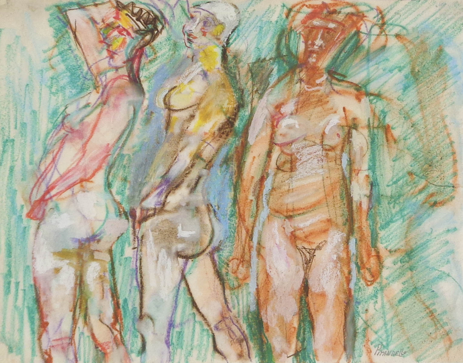 Fausto Pirandello (Rom/Roma 1899 – 1975) Bagnanti, 1950 ca.;Pastelli col. su carta, 22 x 28 cm; firma