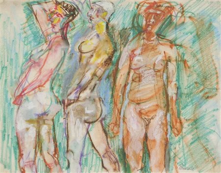 Fausto Pirandello (Rom/Roma 1899 – 1975) Bagnanti, 1950 ca.;Pastelli col. su...