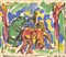 Otto Mühl Nudo femminile con animale, 1984;Guazzo, 35 x 40,7 cm, in cornice