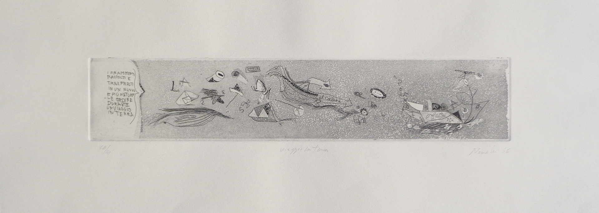 Gastone Novelli (Wien/Vienna 1925 – Mailand/Milano 1968) Viaggio in terra, 1966;Puntasecca b/n., 35,2 x 84,7 cm (foglio), 10,5 x 54 cm (lastra), timbro