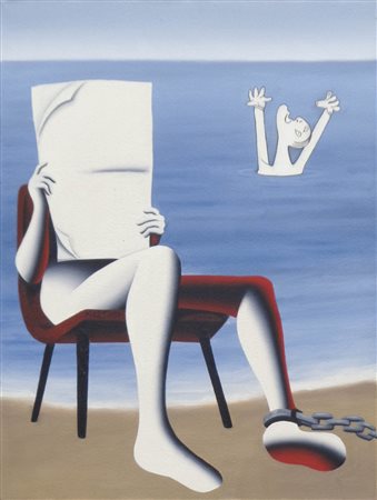 Mark Kostabi (Los Angeles 1960) Newsworthy, 2004;Olio su tela, 60 x 45 cm