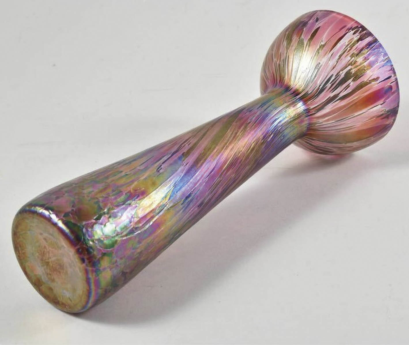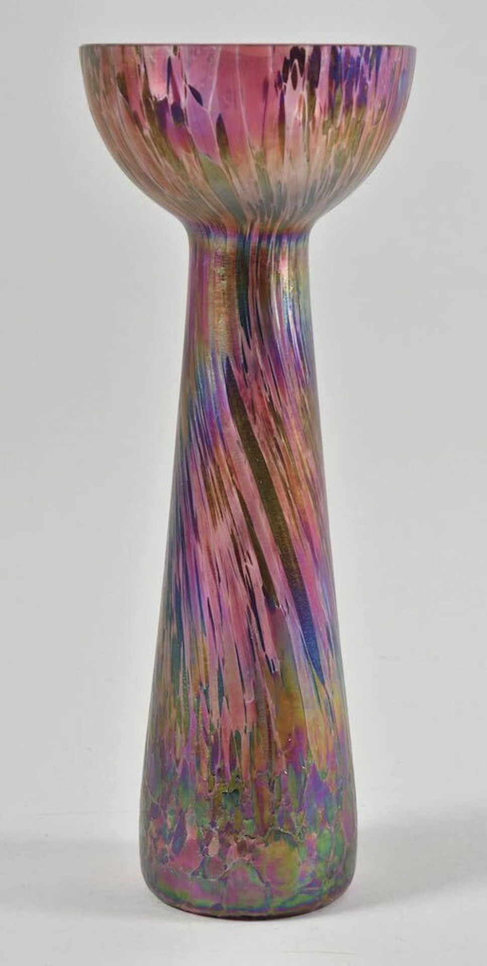 Manufaktur/Manifattura Pallme Konig (zugeschrieben) Vaso Jugendstil, 1910 ca.;in vetro policromo fortemente iridato. h. 21 cm,