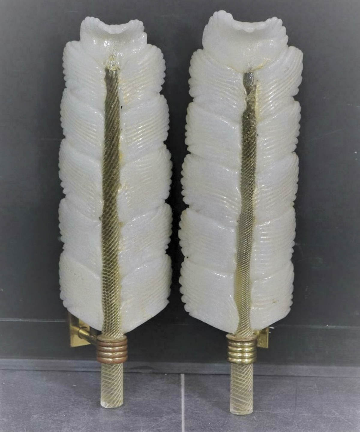 Manufaktur/manifattura Barovier Murano Due imponenti appliques “Piume”, Anni ’30 ca.;in vetro pulegoso e foglia d'oro e ottone dorato, h.