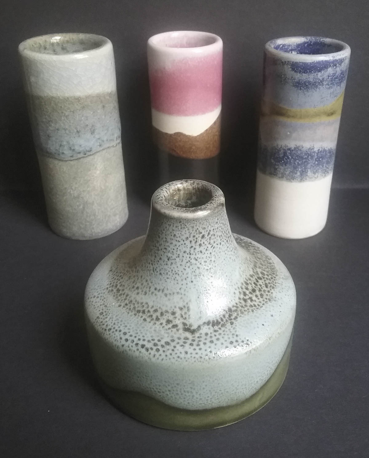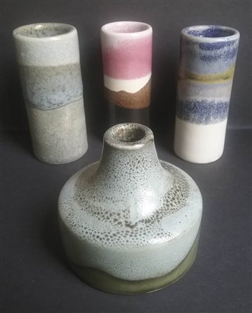 Barbara Stehr Quattro vasi, Anni ‘70;in gres smaltato in policromia, h. 12 x 5 cm e 9