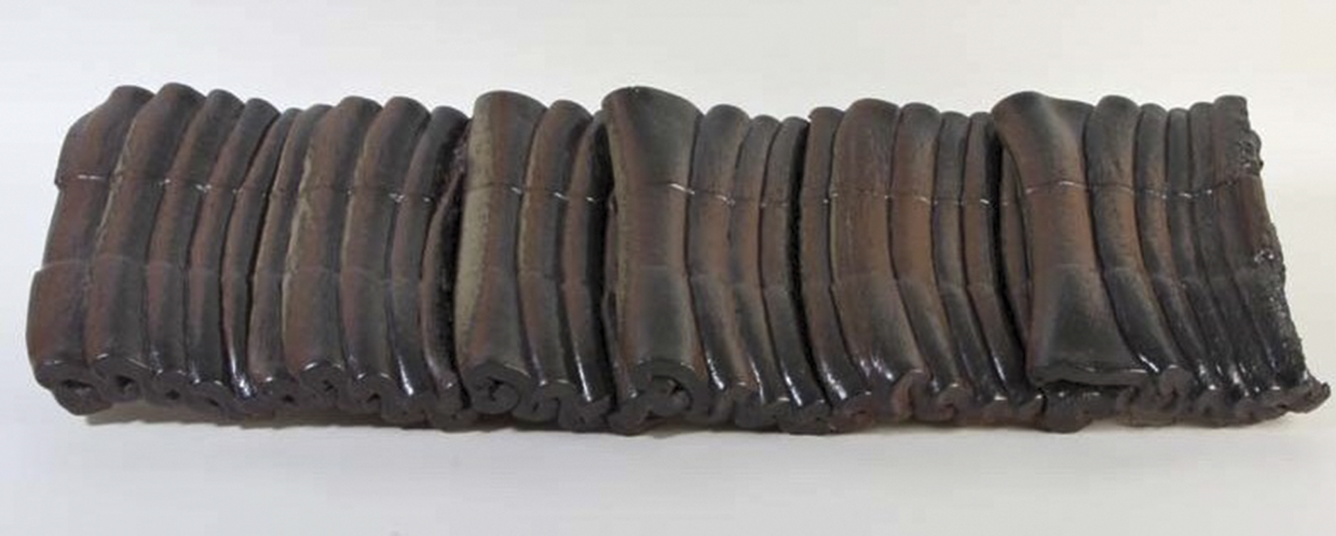 Dieter Crumbiegel Stele, 1985;Museale Scultura Stele da parete in gres policromo con rilievo alto,