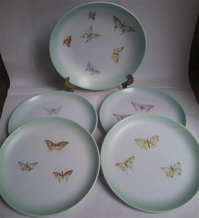 farfalle a smalti policromi, 4 x 22 cm (piatto grande) – 2 x 20 cm (piattini), in buono stato
