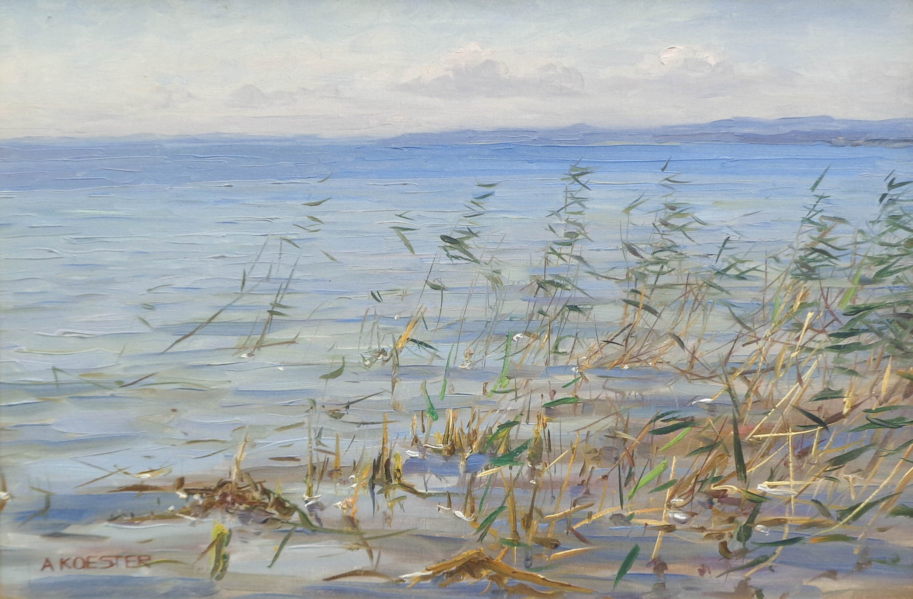 Alexander Koester (Bergneustadt 1864 – München/Monaco di Baviera 1932) Al Lago di Costanza, atmosfera mattinale, 1910/14 ca.;Olio su tela, 44 x 56 cm, in cornice