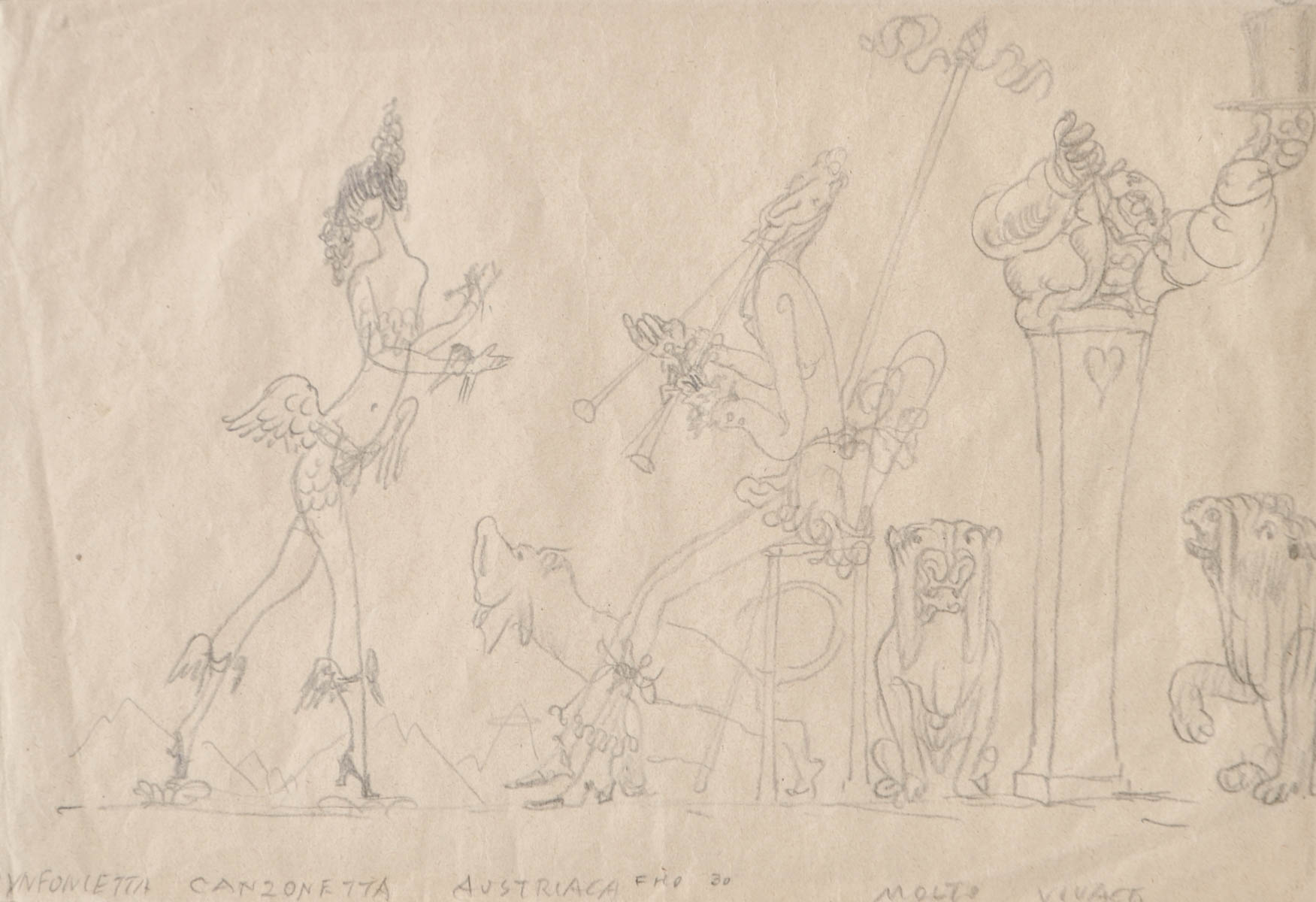 Fritz von Herzmanovsky-Orlando (Wien/Vienna 1877 – Meran/Merano Synfonietta canzonetta austriaca, 1930;Matita, 16,3 x 23,8 cm
