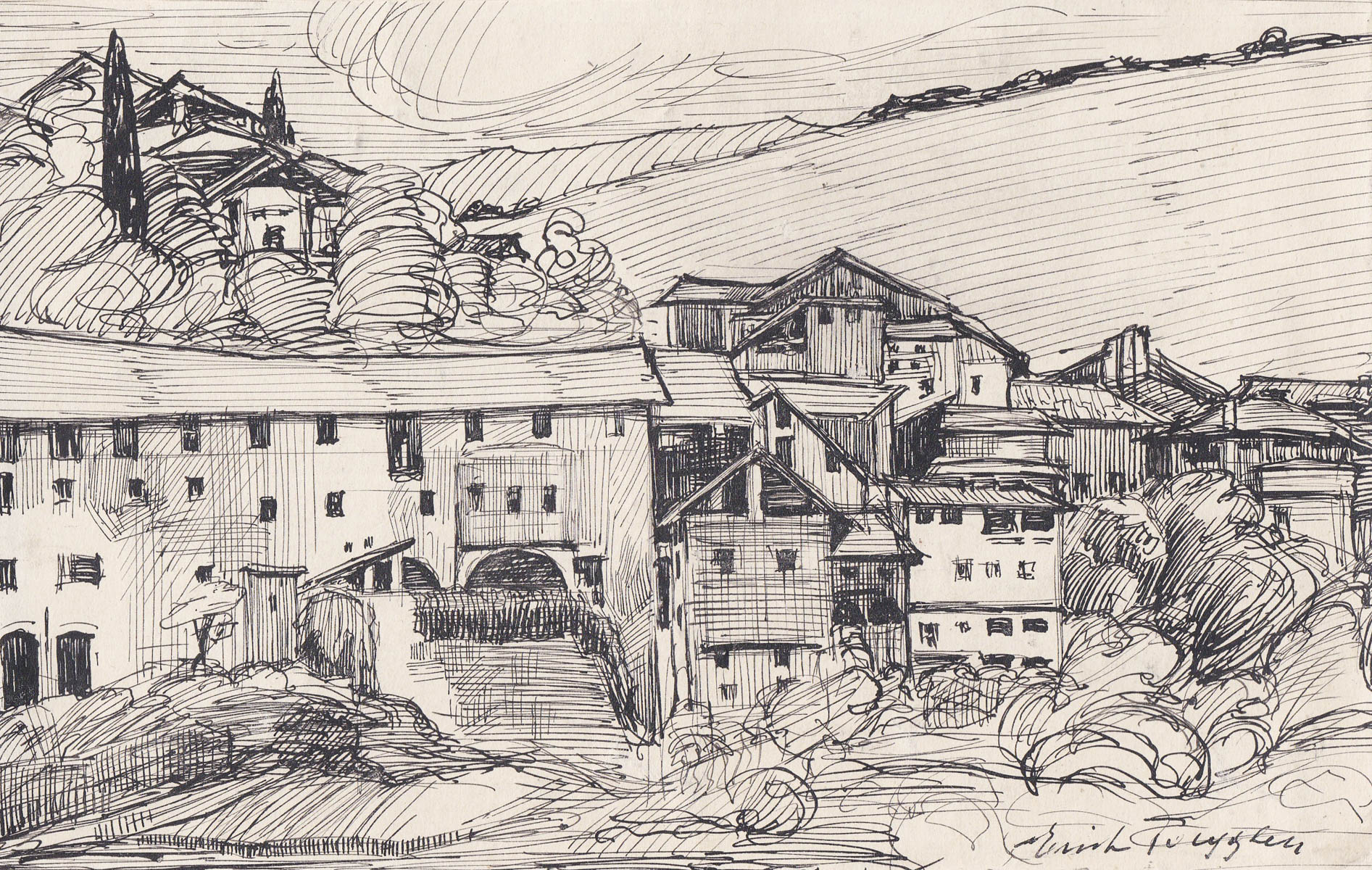 Erich Dalla Valle del Sarca;Tusche, 13,4 x 21,2 cm, auf Untersatzpapier kaschiert