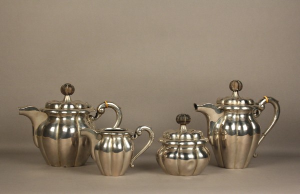 Firmato, datato. Servizio da tè in argento composto da quattro pezzi, gr....