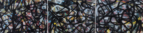 ALBERTO PARRES Tangeri (Marocco) 26/08/1953 Senza titolo (trittico), 1983 acrilico su 3 tele cm. 50x70 cadauna, totale cm. 50x210, firma e anno al retro della tela 1, firma al retro della tela 2, opera registrata presso la Raccolta delle Opere Studio Soligo (Roma) come da dichiarazione su tre foto, opera priva di cornice.