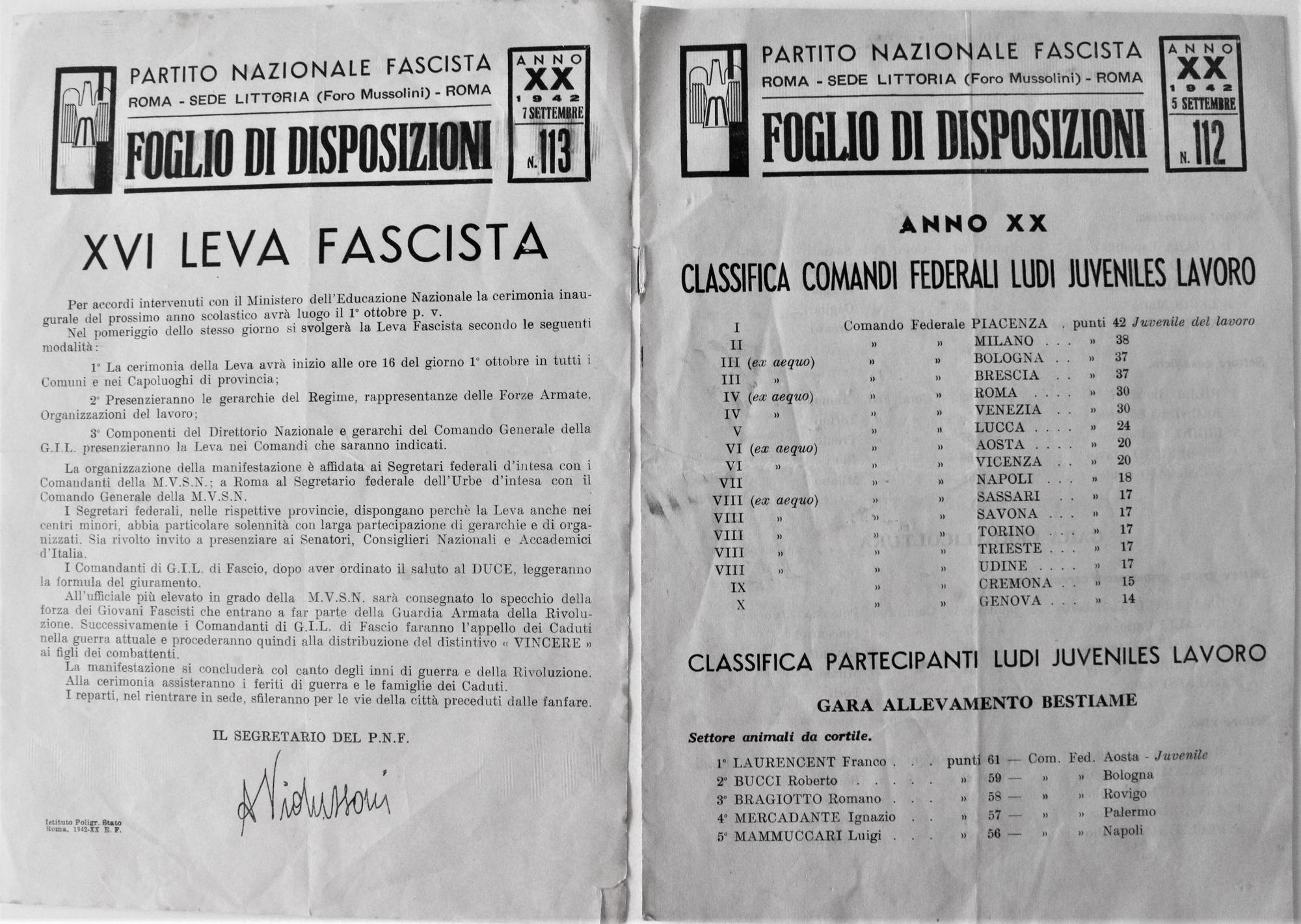 Lot 106 | DOCUMENTO PERIODO FASCISTA foglio di disposizioni n. 113 del 1942 XVI Leva...