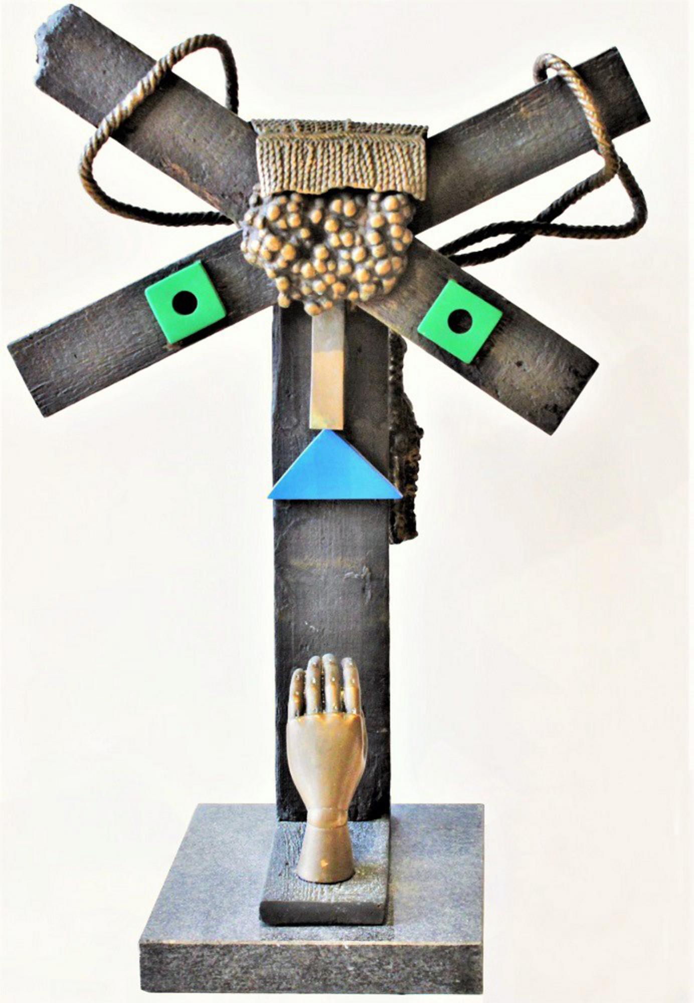 Enrico Baj L'ARCHEOLOGO scultura in branzo con base in marmo, cm 85x60x35...