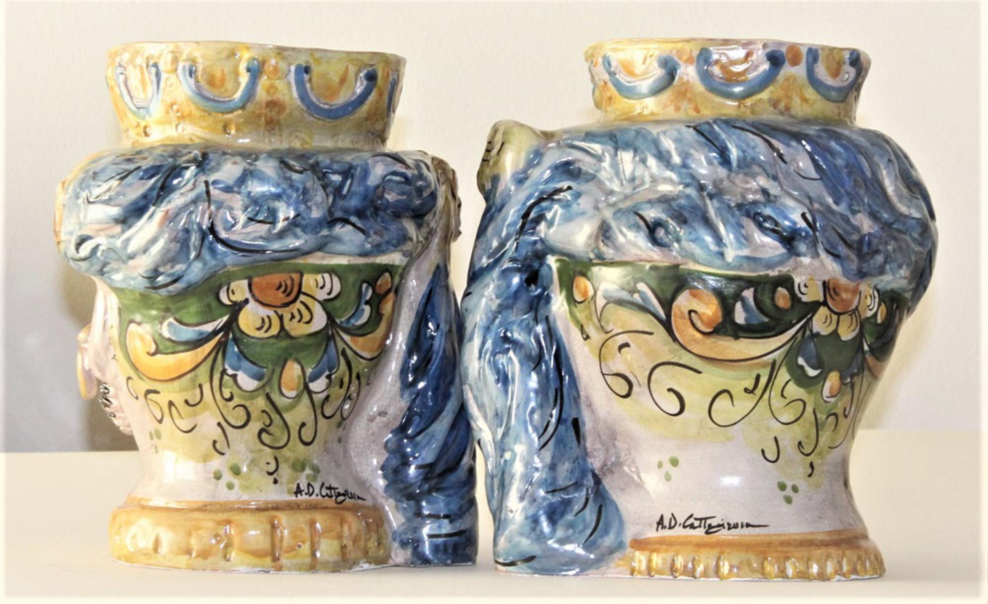 Ignoto COPPIA TESTE DI MORO DI CALTAGIRONE lotto di due ceramiche di...