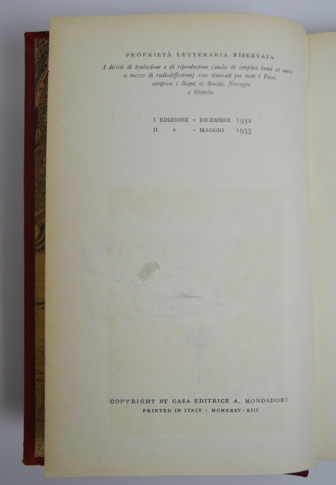 III edizione, Edizioni Mondadori,Milano, 1935