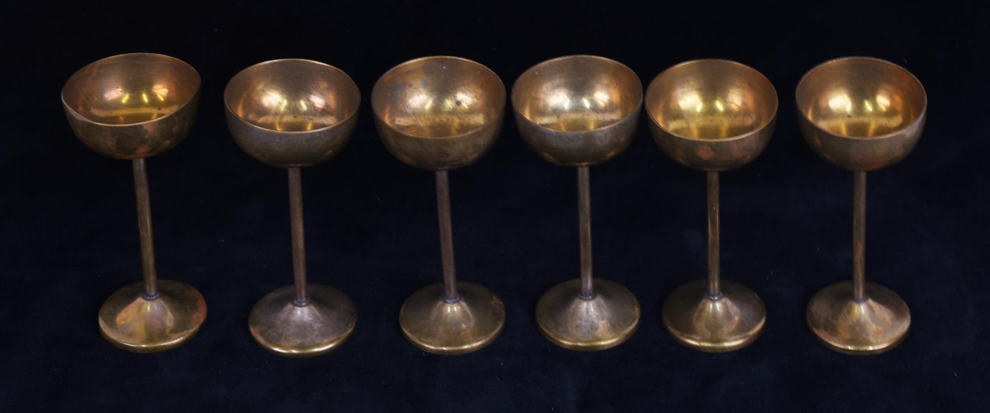 LOTTO DI 6 BICCHIERI IN OTTONE da liquore anni '50 h 8 cm Segni d'usura