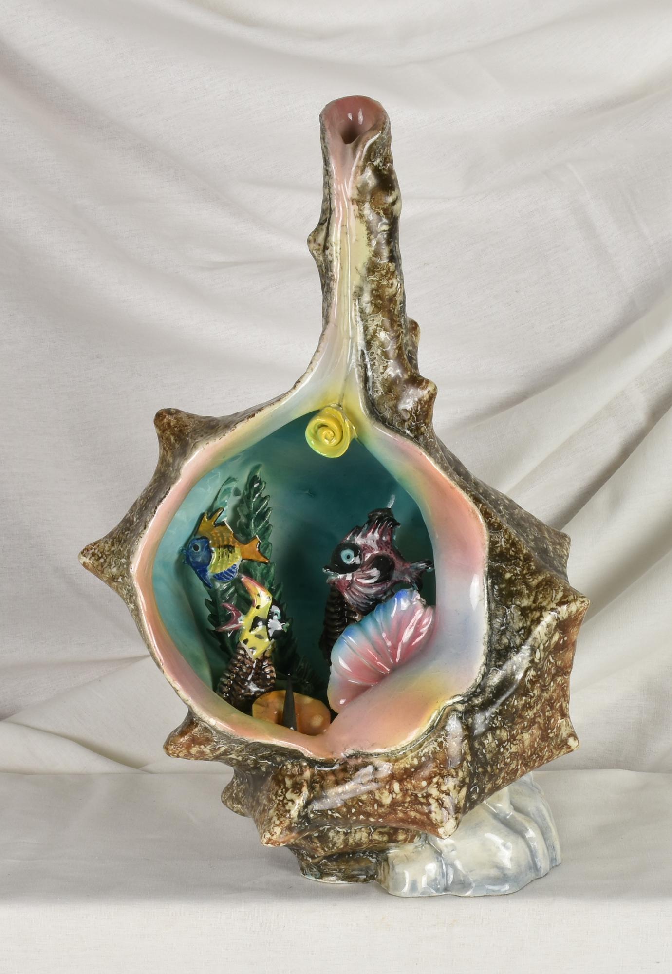 LAMPADA IN CERAMICA a forma di conchiglia Francia, meta' XX sec. h 33 cm