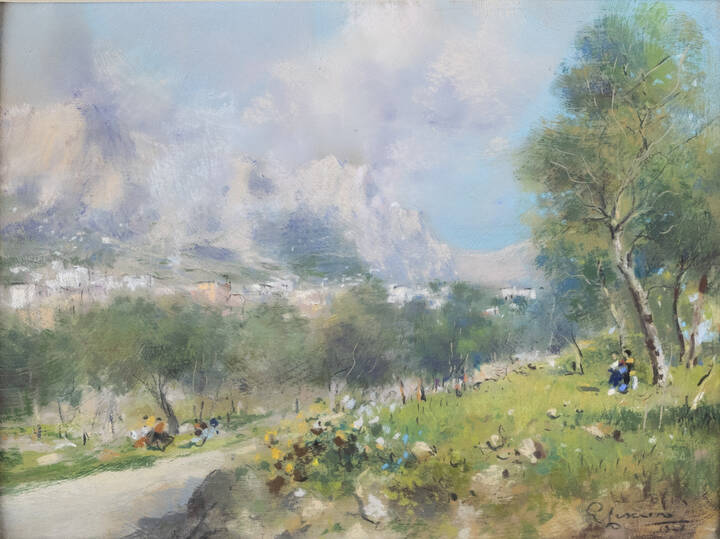 GIUSEPPE CASCIARO<BR>Ortelle (LE) 1863 - 1945 Napoli<BR>"Paesaggio con figura" 1927
