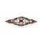 in oro giallo 18K, argento, interamente traforata con rubini taglio ovale e goccia, diamanti taglio rosa.