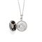 in oro bianco 18K, con pendente tondo in onice che cela orologio con quadrante in madreperla e numeri romani, decorato da diamanti taglio brillante per totale ct 0,50 circa.
