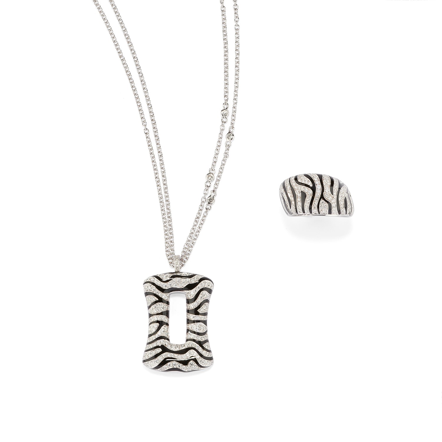 in oro bianco 18K, a motivo zebrato in diamanti taglio brillante per totale ct 2,60 circa complessivi e smalto nero.