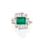 in platino, al centro smeraldo taglio rettangolare a gradini di ct 1,90 circa contornato da diamanti taglio baguette e navette per totale ct 1,50 circa.