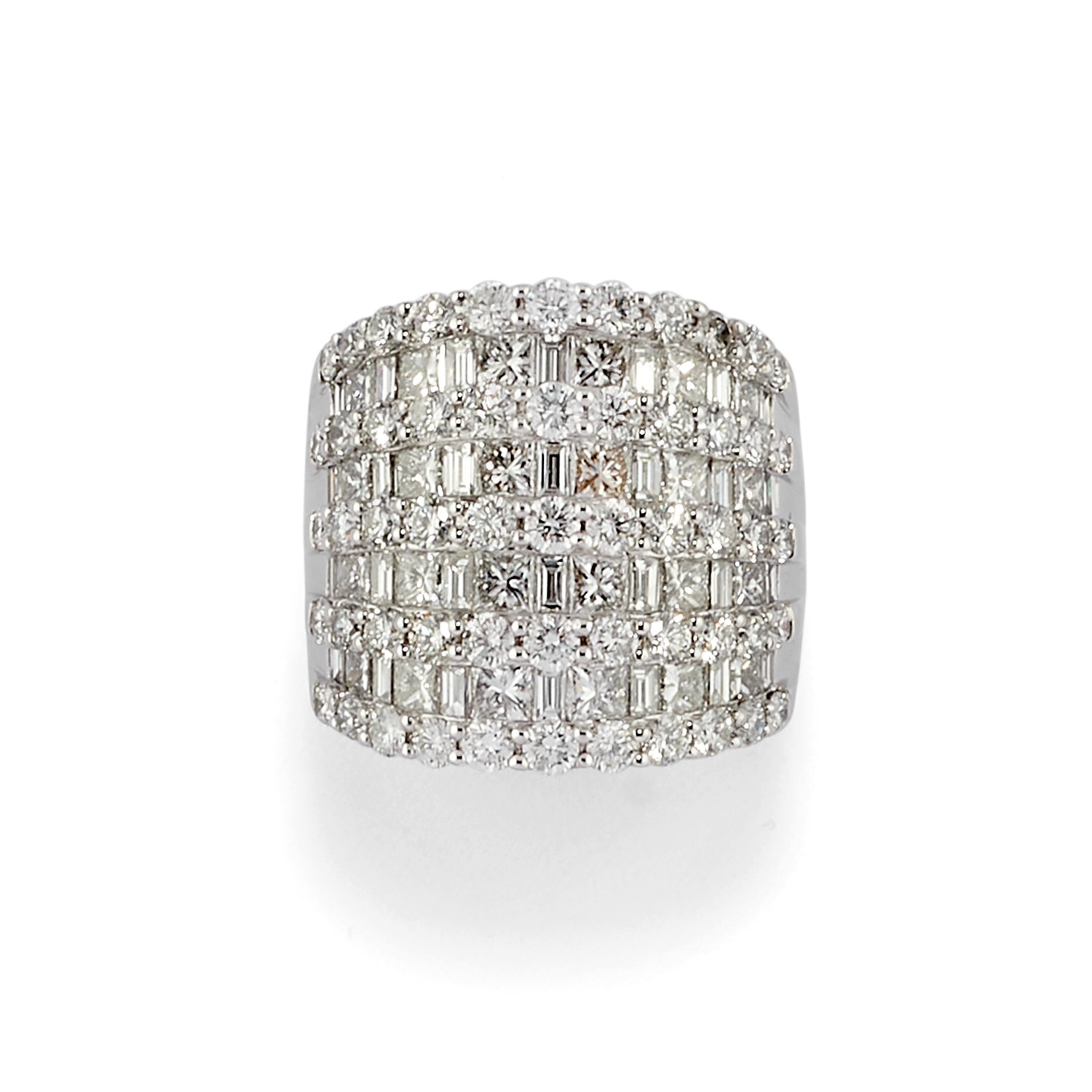 in oro bianco 18K e diamanti taglio brillante, princess e baguette per totale 4,00 circa, prob. colore F/G, purezza VVS/VS, a fascia.