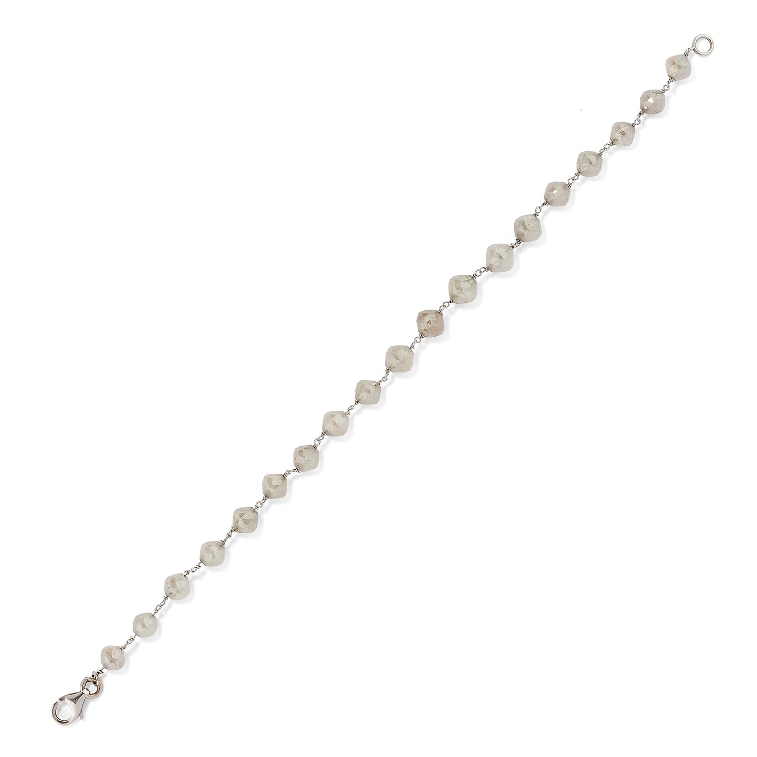 in oro bianco 18K, formato da diciannove pepite di diamanti sfaccettati briolette di colore bianco-grigio per totale ct 15,00 circa, trattenuti da catenella.
