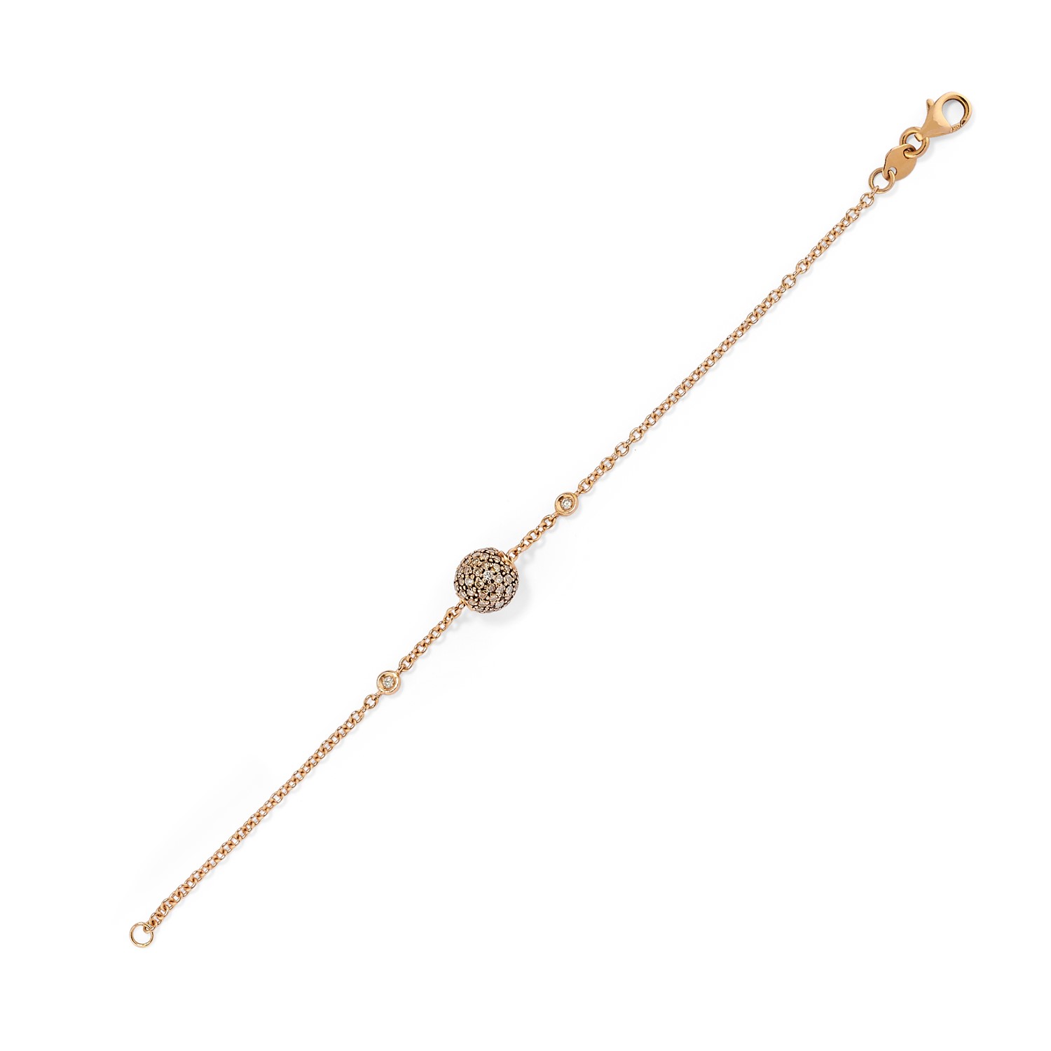 in oro rosso 18K, sfera brunita con pavé di diamanti taglio brillante, a catenella.