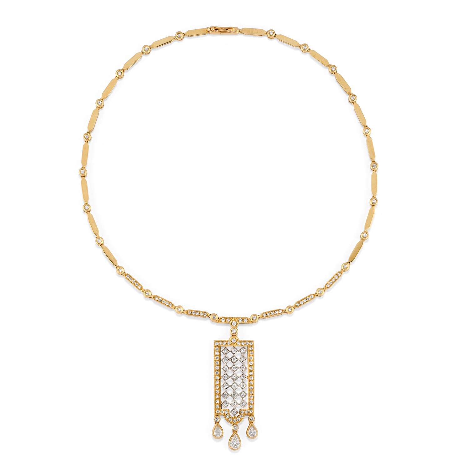 in oro giallo 18K, diamanti taglio brillante e goccia per totale ct 4,00 circa.