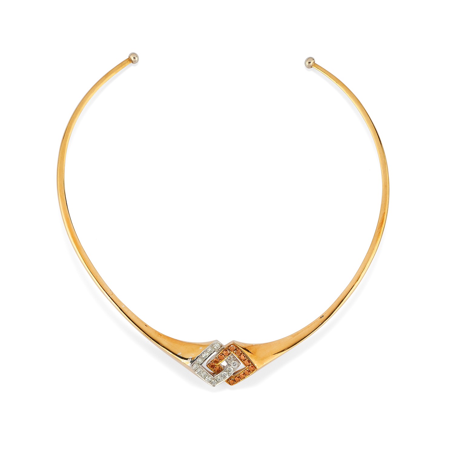 in oro bicolore 18K, centrale geometrico con diamanti incolore e fancy cognac per totale ct 1,50 circa.
