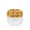 in oro giallo 18K e rubini taglio rotondo cabochon per totale ct 4,00 circa, di forma stilizzata con decoro traforato e sbalzato.
