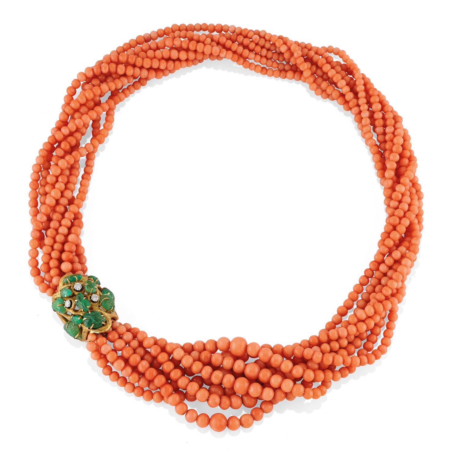 Lot 620 | Collana con corallo, diamanti e smeraldi