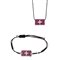 in oro bianco 18K con cordoncino nero con chiusura scorrevole che trattiene pendente di forma rettangolare con pavé di rubini per totale ct 3,00 circa e diamanti per totale ct 0,20 circa, composto da collana e bracciale, raffigurante bandiera svizzera.