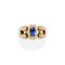 in oro giallo 18K, zaffiro taglio ovale di ct 0,80 circa e diamanti taglio brillante per totale ct 0,20 circa.