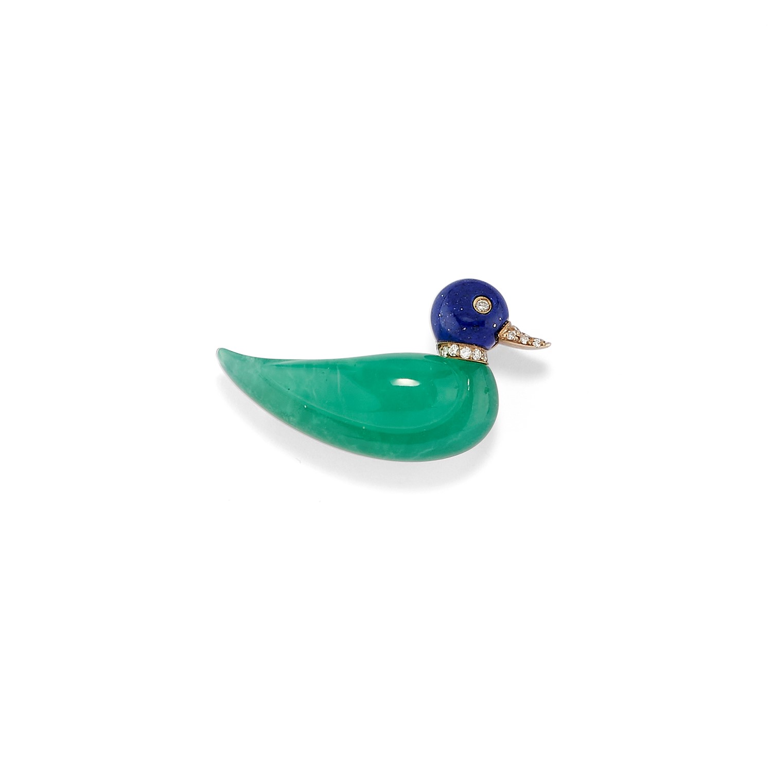 Lot 722 | Spilla con giada, lapislazzuli e diamanti