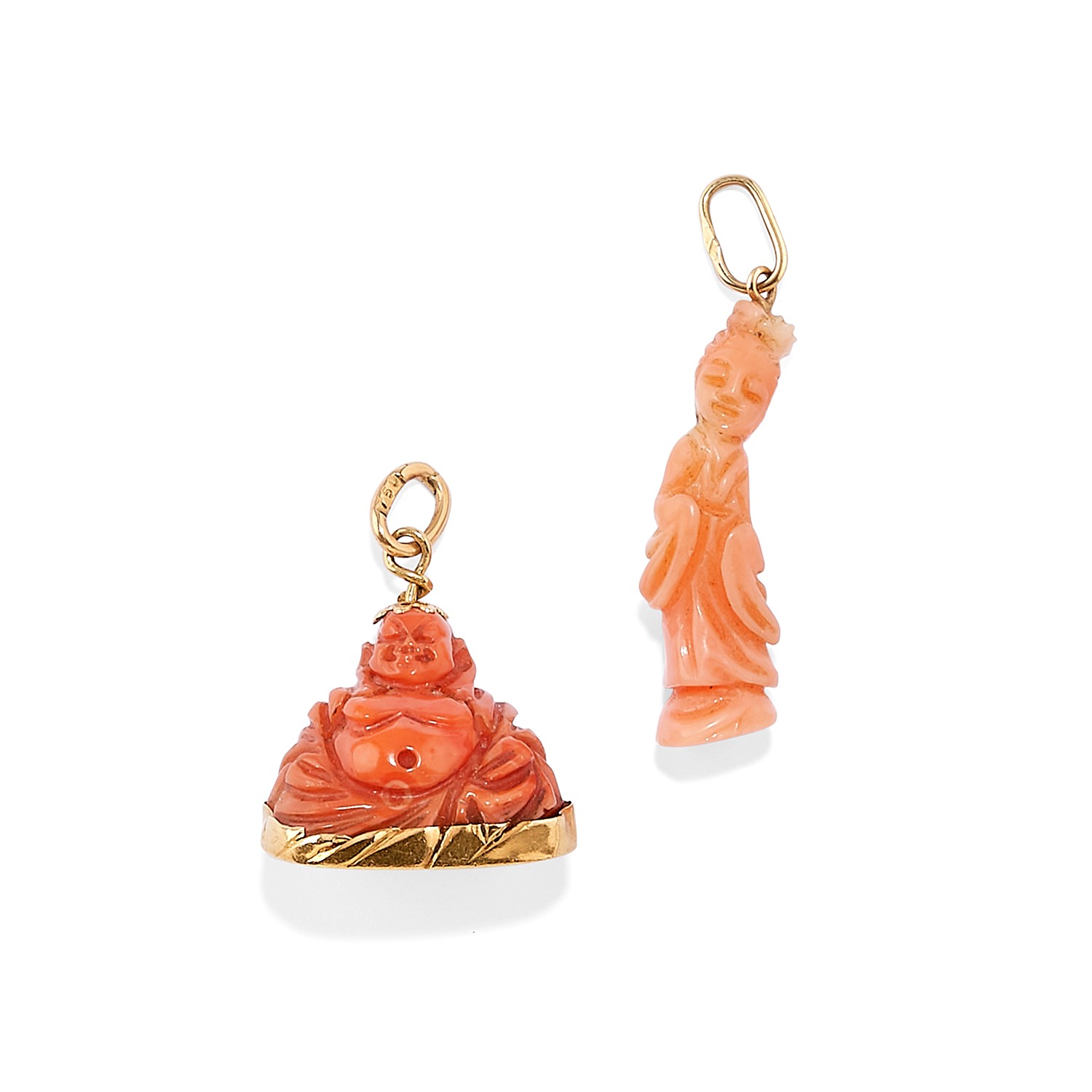 in oro giallo 18K, e corallo scolpito a figure orientali.