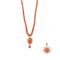 in oro giallo 18K, collana realizzata ad un filo di boules di corallo color arancio mm 4,00-7,50 circa e pendente a forma di sole.