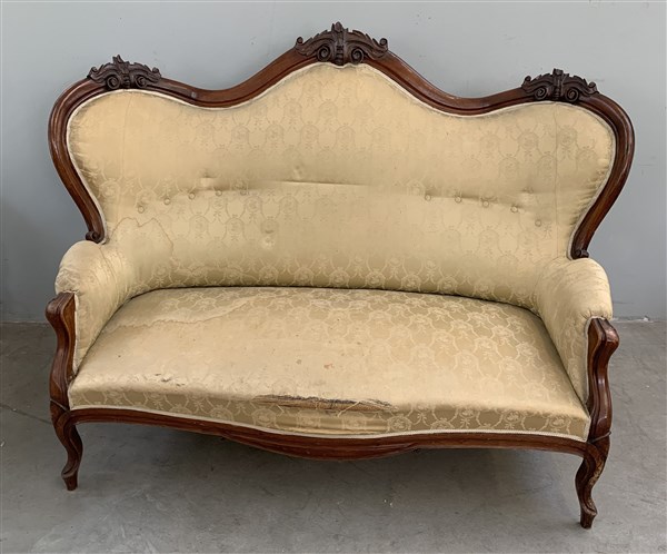 Lot 234 | Divano a tre posti in legno intagliato di forma mossa rivestito in tessuto sec.