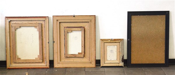 Autori vari. Lotto di quattro dipinti ad olio raffiguranti "Paesaggi" e "Fiori" misure diverse, firmati, in cornici