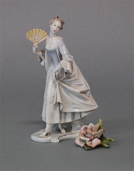 Manifatture diverse, "Rosa" e "Fanciulla con ventaglio" in porcellana (lievi difetti)