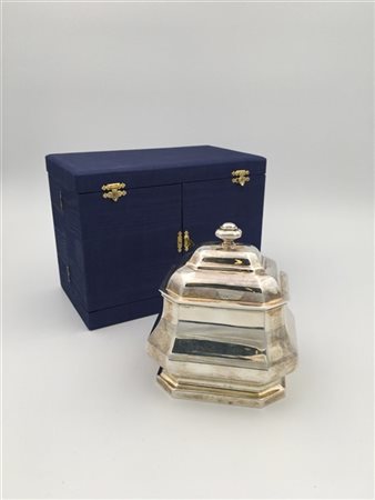 Scatola di forma sagomata in argento. Titolo 800 (g 400) In custodia