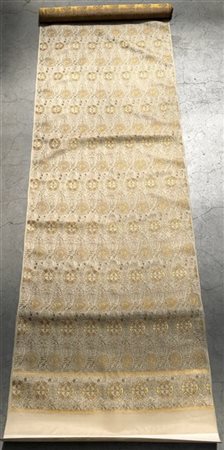 Metraggio di tessuto jaquard in seta broccato con fili di metallo dorato, Giappone, secolo XX. Decoro con ideogrammi e tondi (cm 408x68)