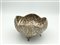 Centrotavola di forma mossa in argento sbalzato a fiori e foglie, piedi decorati a teste di cherubini. Titolo 800 (h. cm 13 xd. 19,5) (g 650)