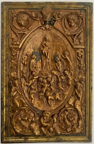 Placca in rame decorata in rilievo a scena sacra (cm 9x14) (difetti)