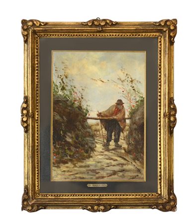 Ferruccio Mancini "Pastore" olio su cartone telato (cm 35x25) firmato in basso a